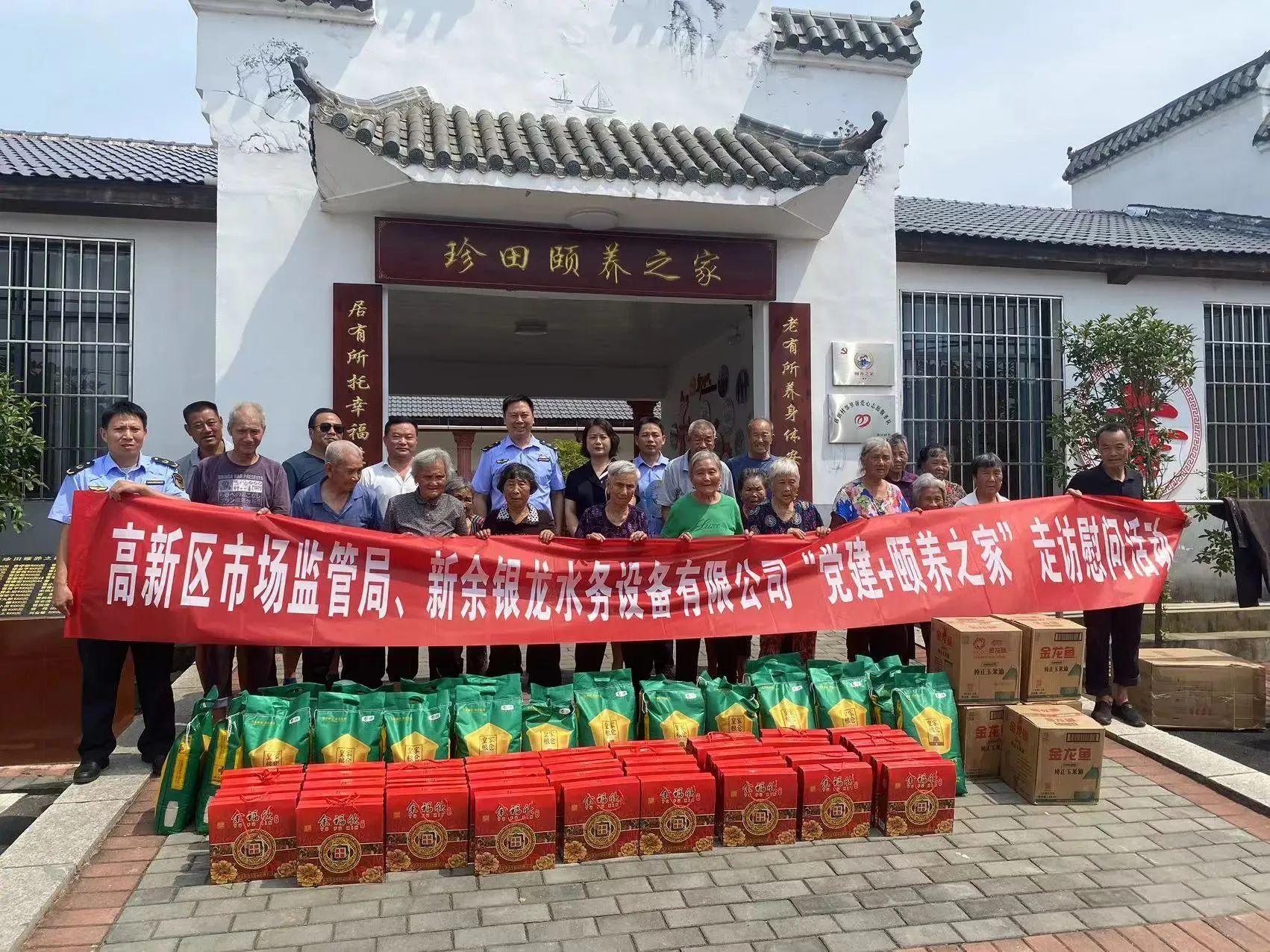 秋高气爽,桂花飘香,在佳节来临之际,高新区市场监督管理局刘局、汪局等领导与新余银龙水务设备有限公司副总经理李军华到水西镇珍田村“颐养之家”进行扶贫走访活动。给“颐养之家”的老人们送上米,油,月饼等慰问品;并通过村委向颐养之家捐赠爱心扶贫款。