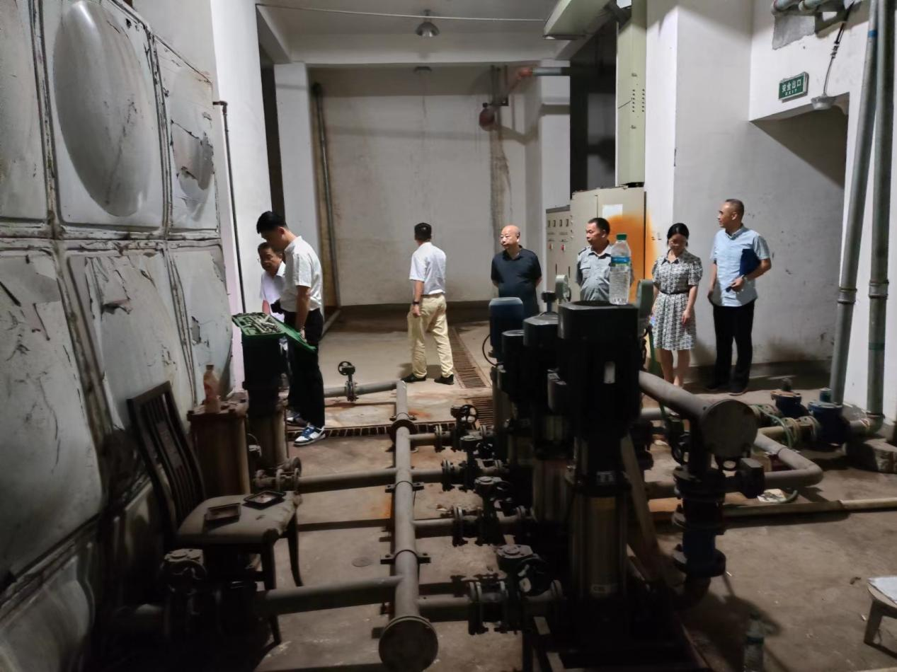 听取何总汇报后钟组长、胡调研员等一行人带着问题到现场查看花样年华小区、恒基广场小区、地王广场小区二次供水设备管理现状情况。